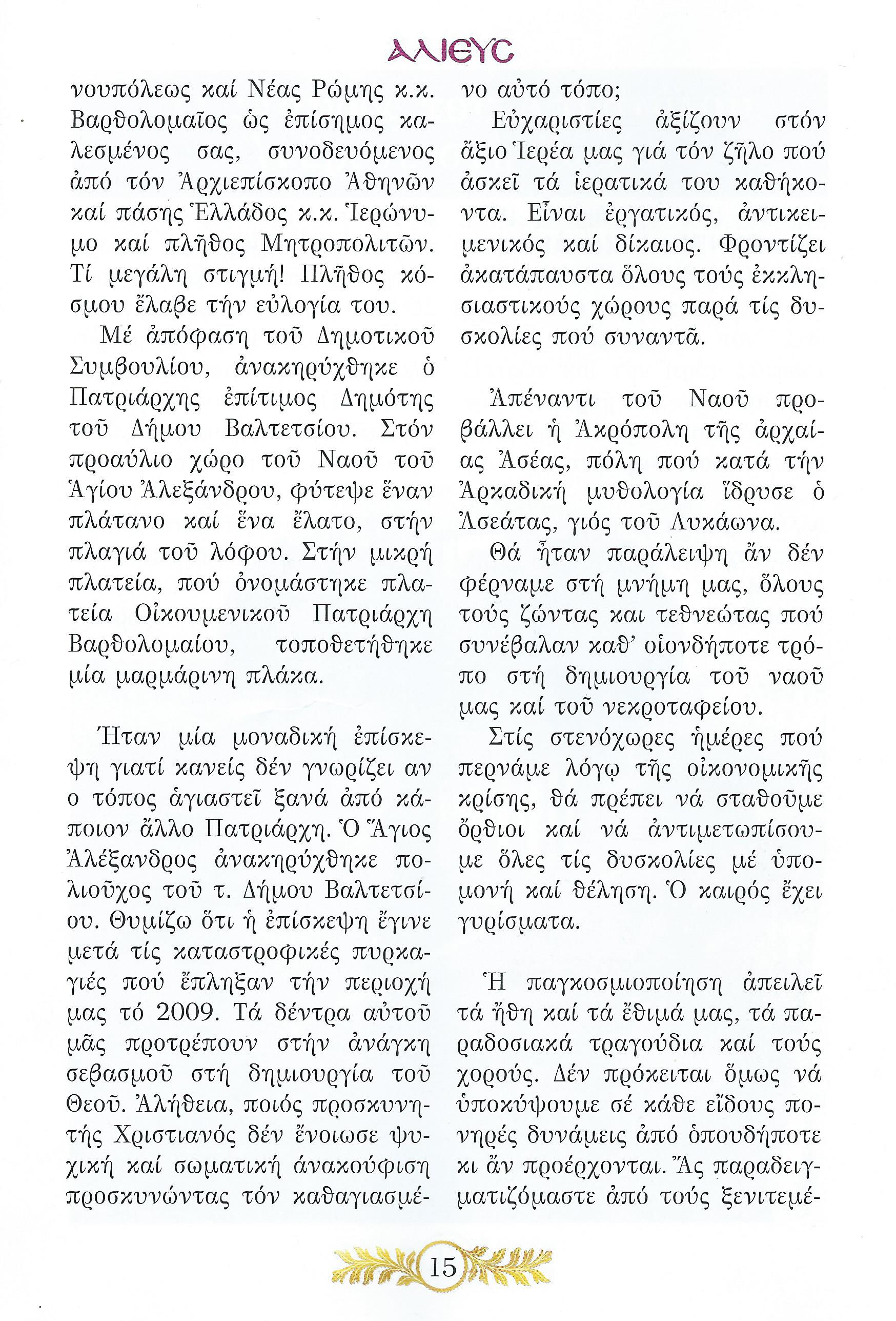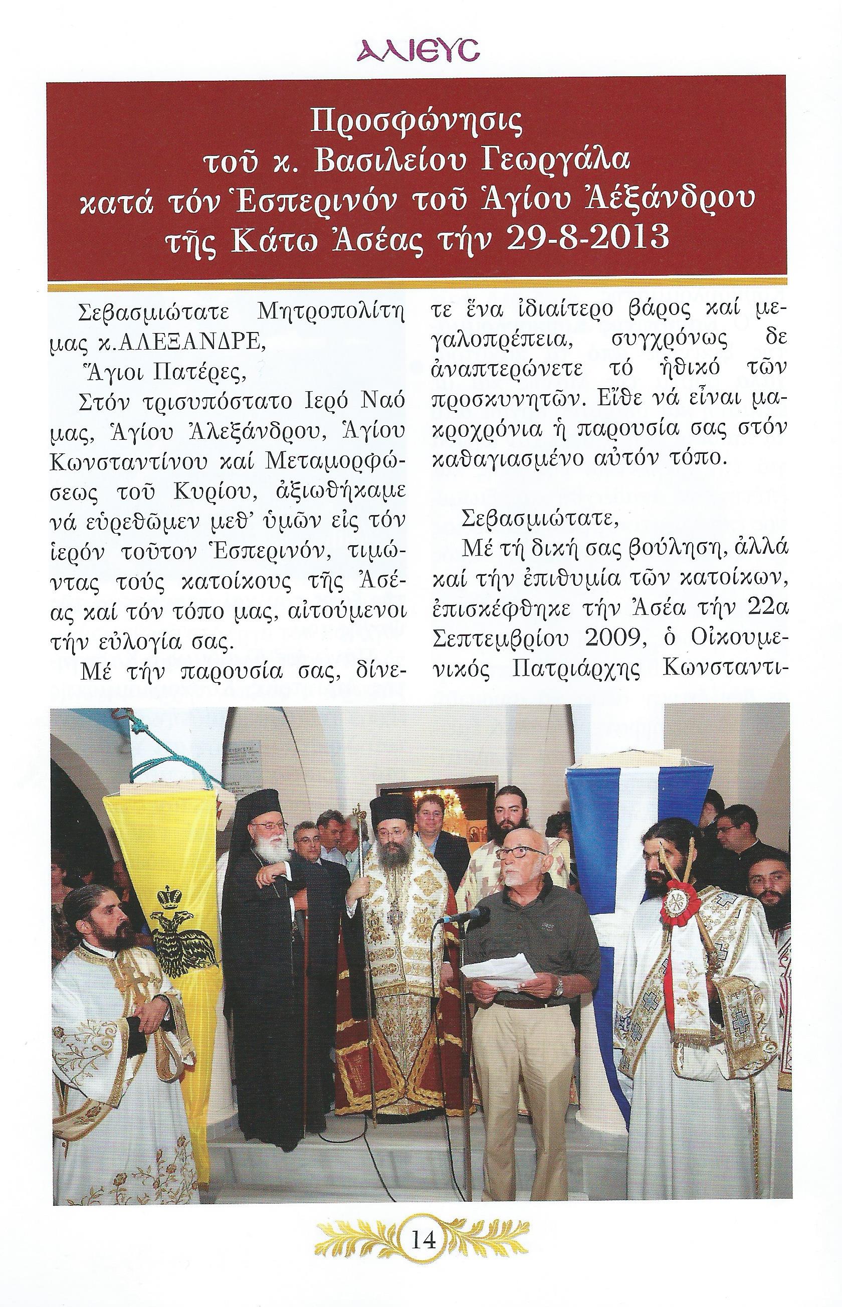 Προσφώνηση στον Μητροπολίτη Αλέξανδρο