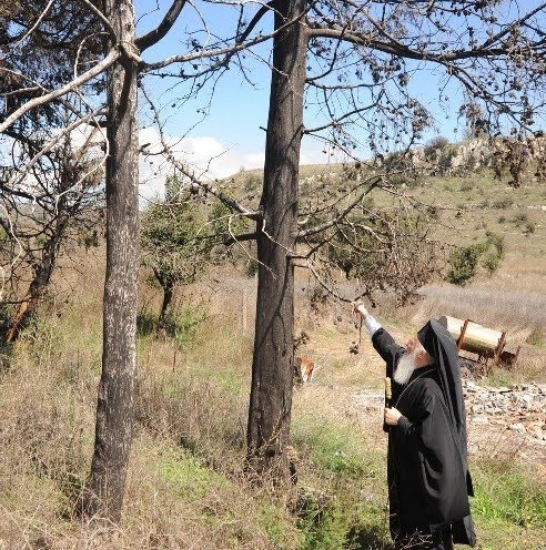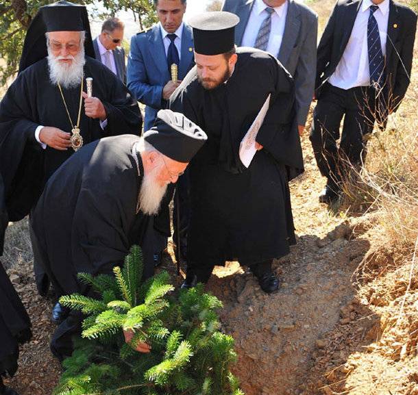 of the Valtetsi municipality. Patriarch symbolically planted a platan and a fir in order to remind to the following generations the need to protect the environment.